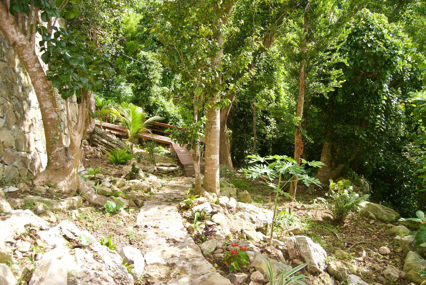 A hidden gem on the edge of a mountain, overlooking a lush tropical island....